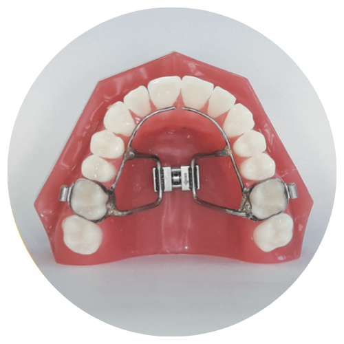 De hyrax beugel met implantaten is een vaste beugel die, net als de reguliere hyrax, bedoeld is om de bovenkaak te verbreden.